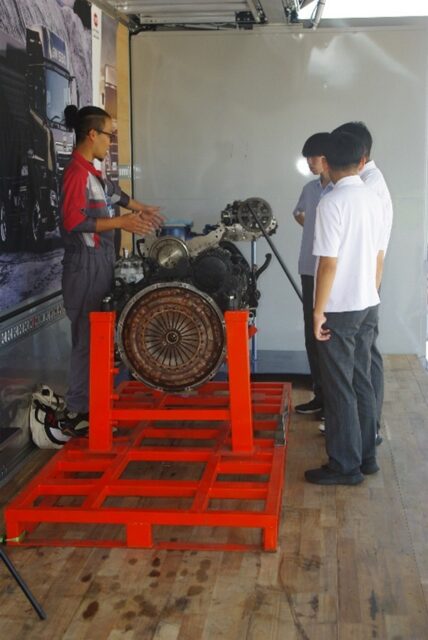 当日はたくさんの高校生がブースに来場してくれました。大型トラックに実際に乗車いただき、迫力や楽しさを体験してもらっています。